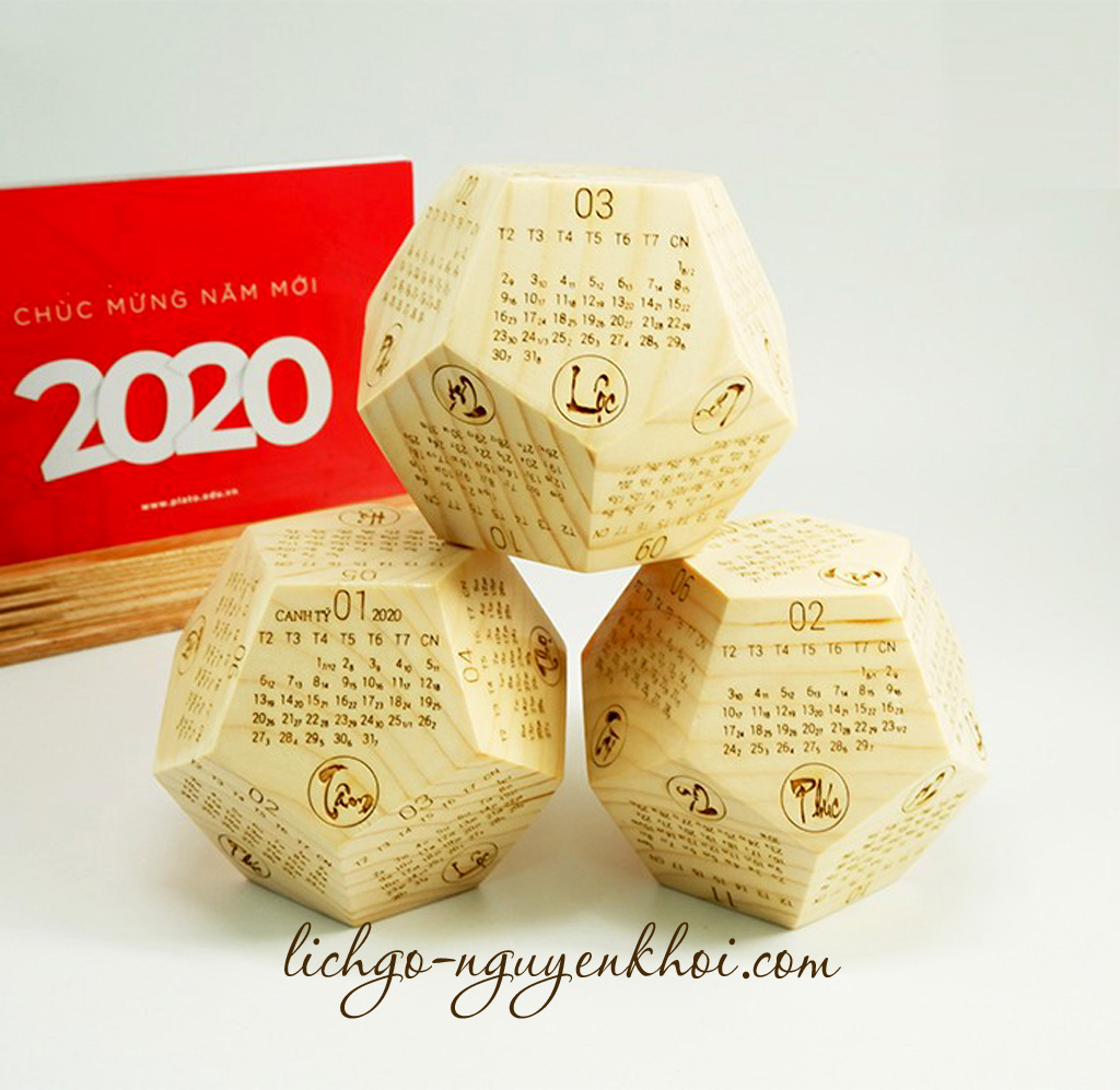 Lịch gỗ nguyên khối, lịch nguyên khối 2025 lịch gỗ 12 mặt ngũ giác